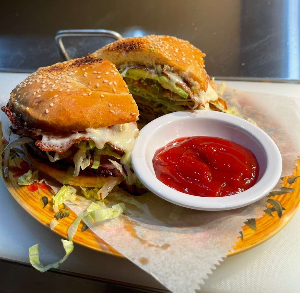 Handcrafted quarter-pound ground beef burger, cooked to perfection and topped with mayonnaise, lettuce, tomatoes, avocado, jalapeño peppers, and cheese. This delightful meal is accompanied by French Fries and medium fountain Drin.