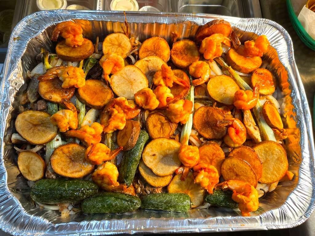 Grilled chicken, sausage, steak, and shrimp with potatoes, jalapeños, and green onions. Served with rice, beans, and salad for two.